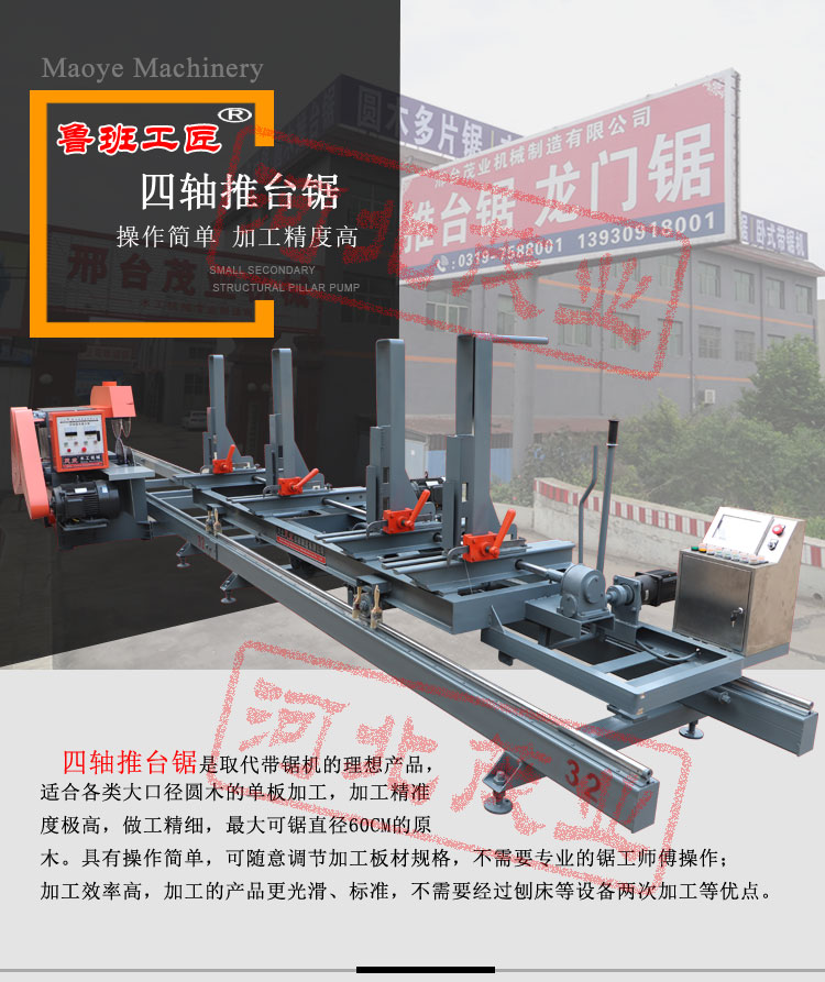 數(shù)控四軸推臺(tái)鋸產(chǎn)品是我公司在原有推臺(tái)鋸設(shè)備基礎(chǔ)上新設(shè)計(jì)開(kāi)發(fā)的產(chǎn)品,具有高品質(zhì)、新外觀、多鋸片鋸切設(shè)計(jì),穩(wěn)定性高,安全、高效、操作維護(hù)簡(jiǎn)單等優(yōu)點(diǎn)。